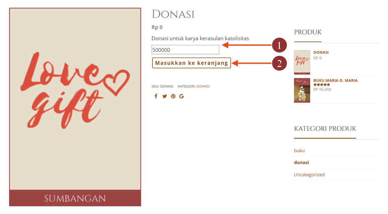 - Masukan jumlah donasi, dan klik: Masukkan ke keranjang